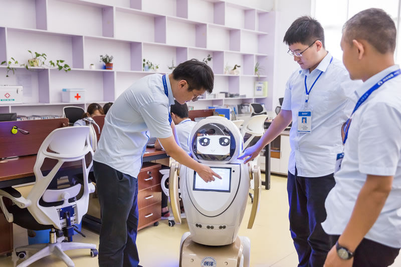 創(chuàng)澤的智能機器人在前臺工作,可語音對話喚醒