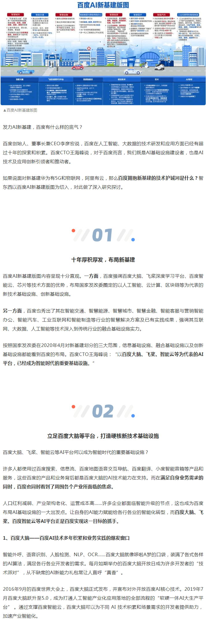 隨著2020年新基建被國(guó)家發(fā)改委明確劃分三大范圍并寫(xiě)入2020政府工作報(bào)告,科技巨頭們紛紛就新基建布局投資、開(kāi)展合作。百度更是亮出了“百度AI新基建版圖”。